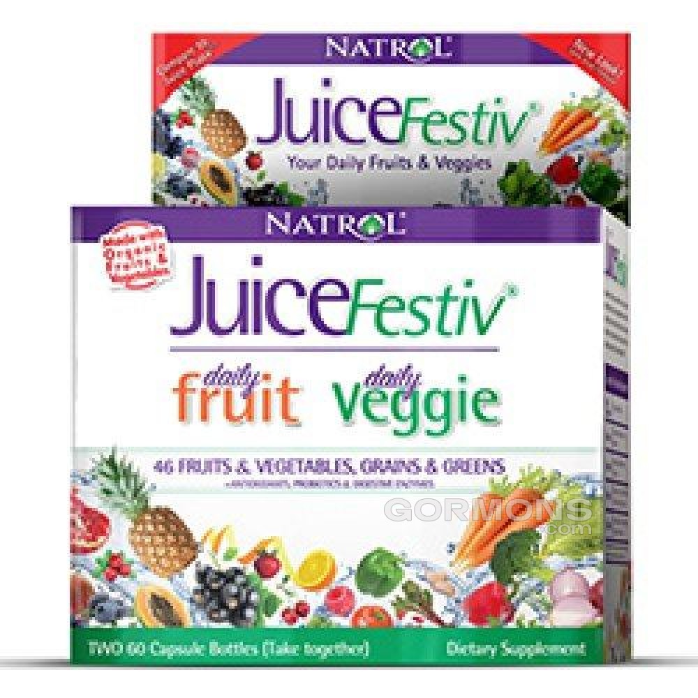 Активний спосіб життя та постійна зайнятість сучасної людини ускладнює прийом повноцінної їжі. Тому нерідко доводиться вдаватися до перекусу. Альтернативним рішенням у щоденному вживанні в своєму раціоні овочів і фруктів є біодобавка Natrol Juicefestiv. У кожній порції продукту міститься необхідна кількість потрібних вітамінів і мінералів, що містяться у фруктах і овочах. Natrol Juicefestiv – це органічна суміш плодів, що містять велику кількість корисних речовин для підтримки здоров'я організму людини.