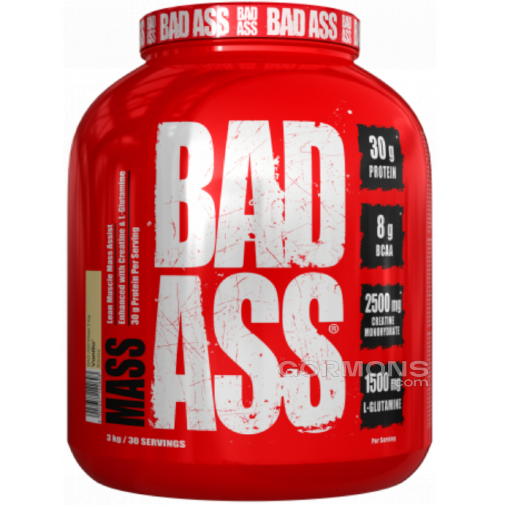 Гейнер BAD ASS MASS – це продукт, що збагачує щоденний раціон комплексом повноцінних білків та вуглеводів, доповнений оптимально підібраними порціями моногідрату креатину та L-глютаміну. Запропонована формула виявиться корисною як форма підтримки при нарощуванні маси і моделюванні м'язового тіла. Харчова добавка у вигляді легкорозчинного порошку, що дозволяє приготувати смачний та поживний коктейль із неймовірним смаком. Добавка рекомендується для людей, які шукають зручне джерело цінних калорій та необхідних поживних речовин – препарат рекомендується для любителів та професіоналів силових видів спорту.