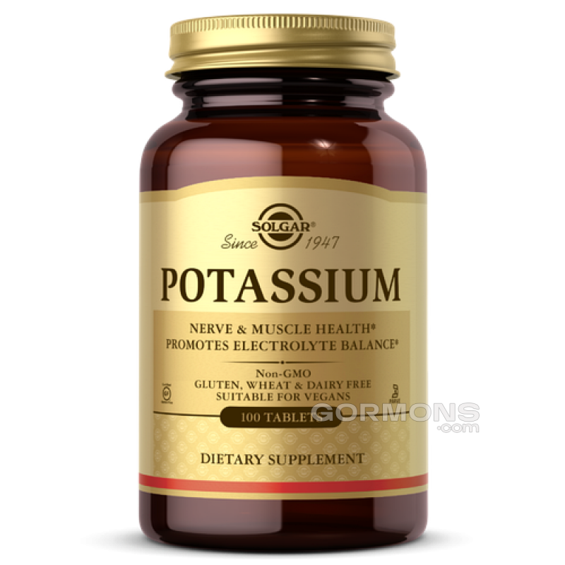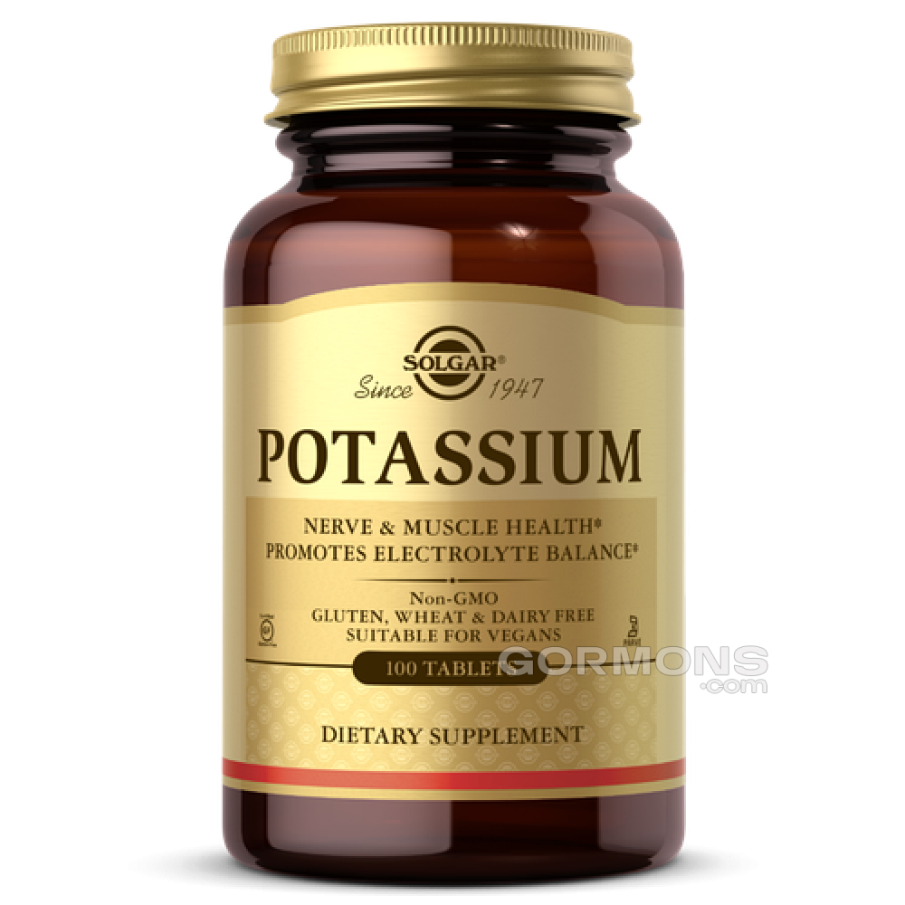 Potassium от Solgar – источник минерала калия. Калий является важным минералом, необходимым организму. Он содержится в таких продуктах, как зеленые листовые овощи, семена подсолнечника, картофель и бананы. Это жизненно важно для мышечной деятельности. Являясь важным электролитом, он регулирует нервные сигналы от мозга и позвоночника к мышцам, тем самым способствуя здоровой нервно-мышечной функции. Это также способствует правильному водному балансу в организме и помогает привлекать питательные вещества в клетки.