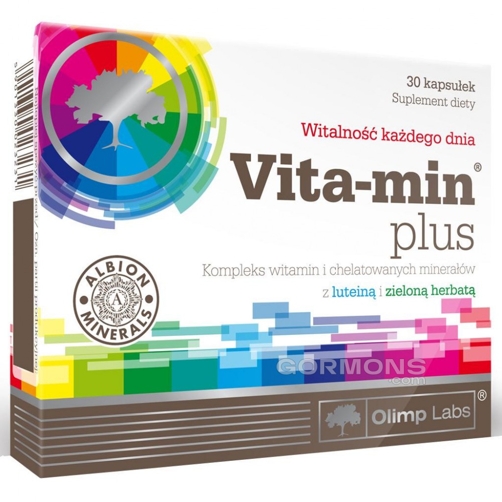 Vita-min Plus - это комплексная композиция витаминов и легкоусваиваемых минералов в виде хелатов (комплексы ионов металлов с аминокислотами для которых характерна высокая растворимость и лучшее усвоение), которые удовлетворяют потребности организма в столь агрессивной экологической среде. Пищевая добавка, обогащенная специально экстрактом Лютеина, необходимого для сохранения и восстановления хорошего зрения, и Гинко Билоба для умственной работы и поддержки нервной системы. Витамины и Минералы - это микроскопические химические вещества, которые берут участие во всех жизненно необходимых процессах, происходящих в организме человека. К сожаленью, единственный источник их поступления - это пища, ведь, как известно, они не могут синтезироваться в организме самостоятельно. Современный способ жизни (нерациональное питание, чрезмерное употребление еды быстрого приготовления, неправильный способ приготовления пищи) не дает возможности получить необходимое количество этих веществ. Еще и дополнительные их потери в организме происходят из-за постоянного стресса, умственных нагрузок, употребления лекарств, вредных привычек и загрязнения окружающей среды. И, как результат, это все отображается на нашем психическом состоянии: ухудшение самочувствия, состояние здоровья и, конечно, не желательные изменения во внешнем виде. Одна капсула Vita-min + покрывает 100 % рекомендуемых норм по некоторым витаминам, а также обогащает большим количеством минеральных компонентов в виде хелатов, особенно цинка, магния и йода (так необходимого в условиях повышенного радиационного загрязнения). Vita-min + - отличается лучшим усвоением минералов и присутствия повышенного количества Лютеина и Гинко Билоба. Олимп Витамин Плюс направлен на ежедневное и регулярное потребление для все людей, не зависимо от уровня физических нагрузок.
